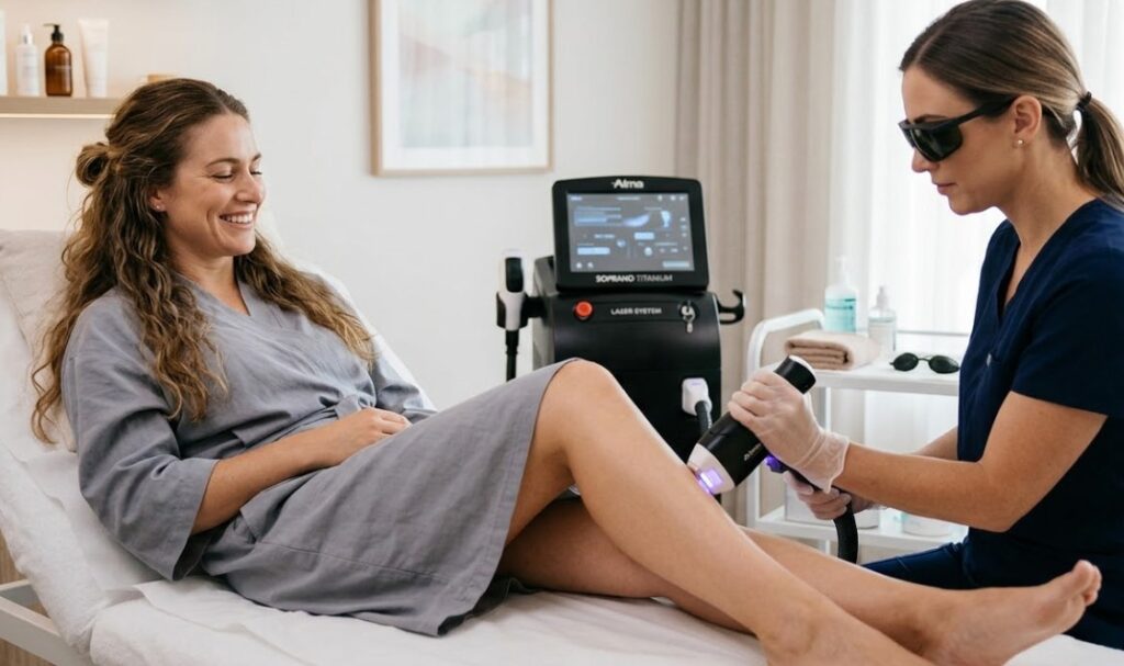 Dauguma šiuolaikinių lazerių turi integruotas galingas vėsinimo sistemas, todėl procedūra yra minimaliai skausminga – juntamas tik lengvas dilgčiojimas ar šiluma. Seanso trukmė priklauso nuo srities: viršutinė lūpa gali užtrukti vos kelias minutes, o kojos – iki valandos.
