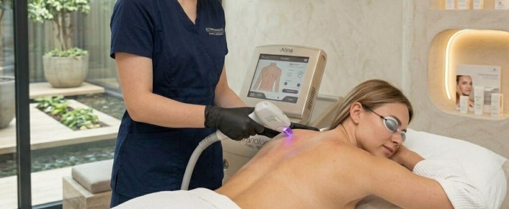 Daug kas bando depiliaciją vašku, tačiau nugara po jos dažnai „atsilygina“ gausiu bėrimu, folikulitu (plaukų maišelių uždegimu) ir tūkstančiais įaugančių plaukelių. Lazeris veikia kitaip: jis ne traukia plauką per jėgą, o sunaikina jo šaknį šviesos impulsais. Po procedūrų kurso plaukai tiesiog nustoja augti, o oda tampa lygi, be jokių raudonų taškelių ar pūlinukų.